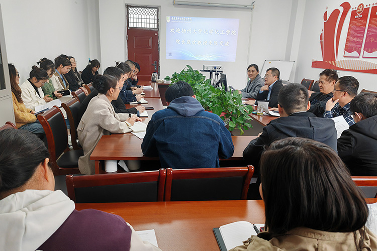 药学部相关负责人介绍了学部师资队伍建设、在校生规模、人才培养模式及专业发展现状。庞欢教授简要介绍了扬州大学化学化工学院的专业设置、化学化工类学科竞赛成果及学生培养情况,分享了该院在科研创新、学生实践能力提升等方面的经验。随后,双方围绕药学部人才培养模式、本科毕业生就业率、学生考研指导、学科竞赛优化及团队科研发展方向等议题展开讨论。庞欢教授结合化学化工学院的实践经验,为药学部的相关工作提供了建设性建议。药学部负责人表示将进一步优化教学与科研工作,提升人才培养质量,助力毕业生高质量就业。