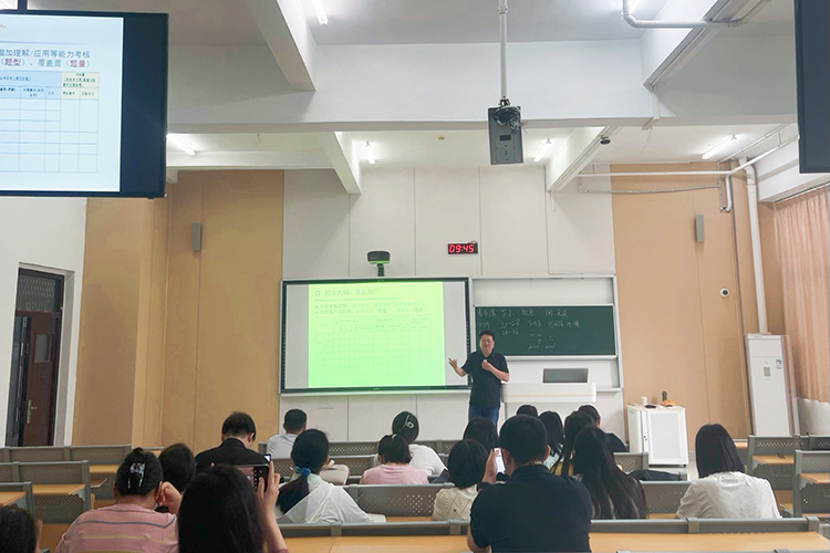 陈园园教授以《PPT的规范制作》为主题,从字体、配色、配图、排版、行间距等方面,讲解了PPT制作的基本原则和规范。朱学江教授以《合格试卷的出题规范》为主题,从命题要求、题型的难度和区分度、常用题型、客观题和主观题的出题规范等方面,讲解了如何出一份合格的试卷。