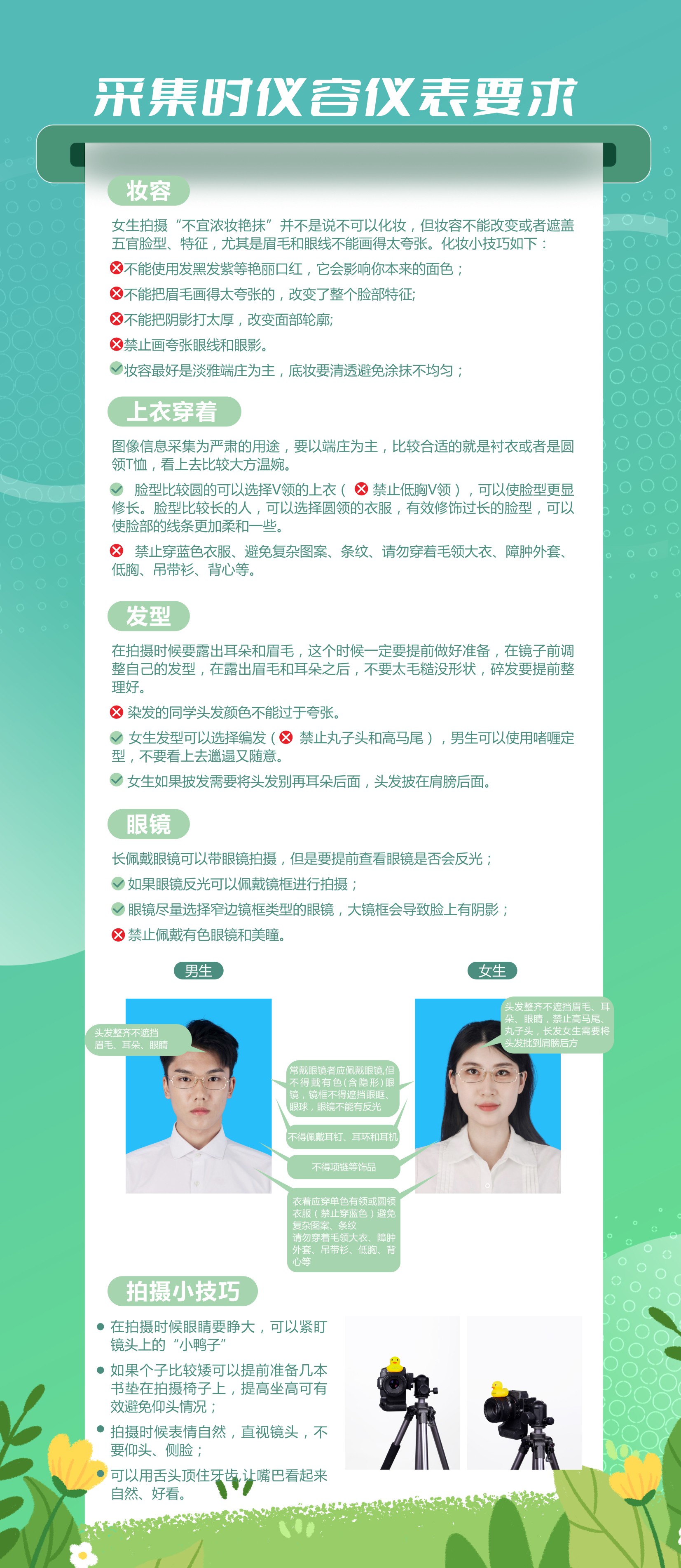 根据教育部关于新生入学资格审查的要求,已于2025年9月6日和15日安排2025年入学新生(含2025级普高、2023级专升本新生)电子图像采集工作,但仍有少部分新生因特殊情况未参加现场采集。现将已采集新生照片核对和未采集新生补拍工作相关注意事项通知如下: