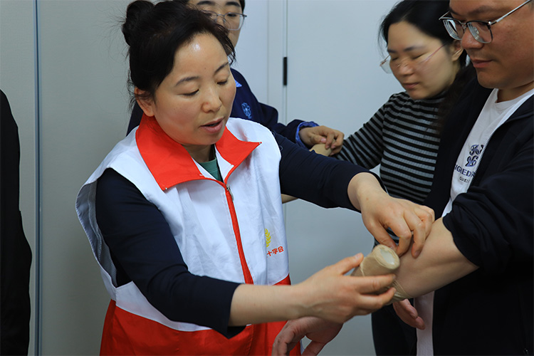 本次培训涵盖心肺复苏、创伤救护(止血、包扎、固定)及海姆立克急救法三项核心技能,设置理论教学、线上考核、实操演练与考核三个环节。学员需依次通过线上理论考试和现场实操考核,合格者方可获得由连云港市红十字会颁发的培训证书。培训现场,师资团队逐一纠正技能动作,确保每位学员掌握规范的操作要领。