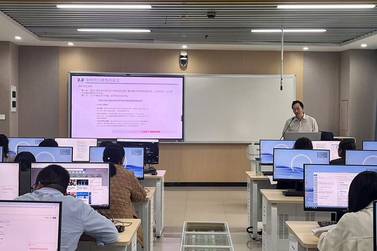 在“AI赋能办公应用”部分,王教授从生成式大模型的基础交互入手,结合办公实际场景,系统讲解了AI工具在文本处理、申报材料优化、会议资料整理等方面的实操应用。在“AI赋能教学”部分,王教授聚焦AI技术在教学准备与课堂实施中的落地进行现场操作。在“AI赋能科研”部分,王教授介绍了大模型技术在科研全流程中的创新应用路径。教职工们结合理论进行实操,在学练结合中深化了对AI赋能全场景的理解,为今后工作与教学的数智化转型打下了扎实基础。