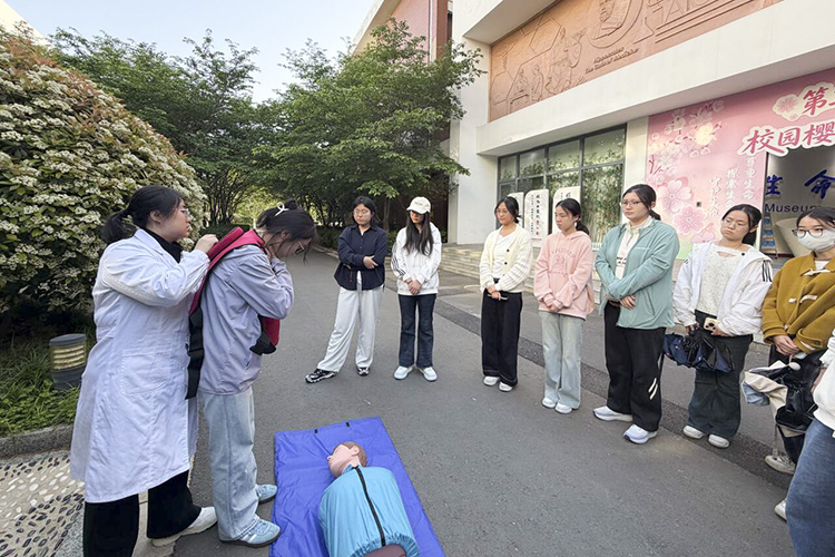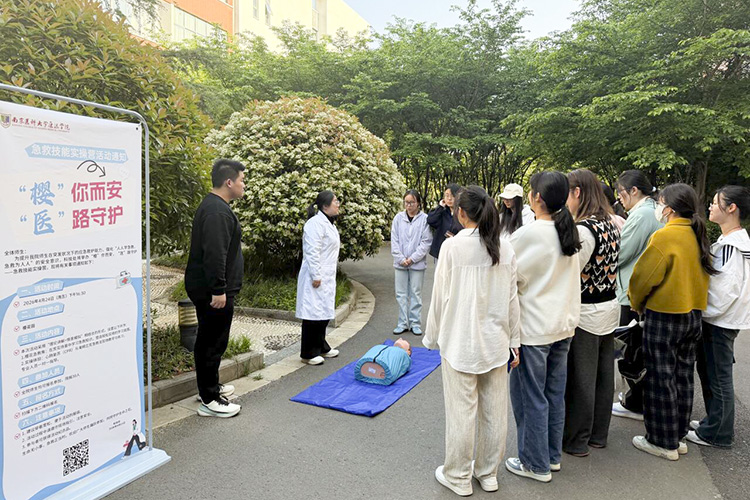 4月24日下午,由科技处主办的“樱”你而安,“医”路守护——心肺复苏与海姆立克急救技能实操营在樱花园举行。活动特邀护理学部苏雯老师担任主讲,来自全院各专业的30名师生代表参加此次培训。